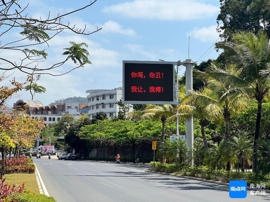 南海网3月27日消息(记者 林师堂)3月27日,在陵水黎族自治县中心大道、桃源大道等路段,融入了趣味提醒内容的LED交通安全指示牌“幽默出圈”。别具一格的指示牌,以新颖的方式吸引行人与驾驶员的注意力,有效提升了道路交通安全。